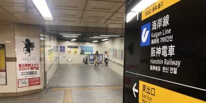 阪急神戸三宮駅の東改札口を出ます。改札を出ていただき、そのまま直進しますと、河合塾の看板が目印の下り階段が見えて参ります。