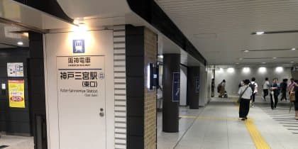 地上に出て直ぐに左(東方向)に曲がります。JR三ノ宮駅中央口、更に直進しますとJRの東口が見えます。