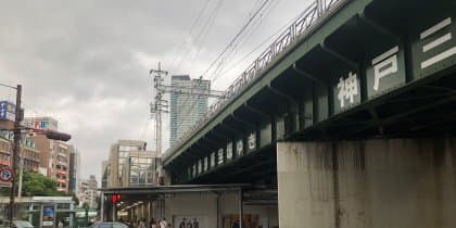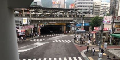 地下鉄改札口を出て、E3出口から地上に上ります。地上に出ますと右に交差点、左にJR三ノ宮駅出口が見えます。