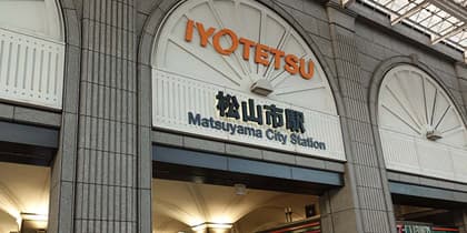松山市駅改札を出ていただき、北出口を出て右手に1分ほど歩きます。