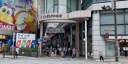 大分駅北口を出ていただき、そこからセントポルタ中央町方面の交差点に向かいます。