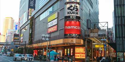アーケードを直進するとエスカレーターが見えてきますので、下らずに左に曲がり、外に出るとnamcoがございます。