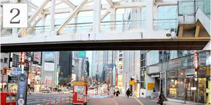 新宿駅南口を出て右にルミネ1(ユナイテッドアローズ)、を甲州街道沿いに西新宿1丁目の交差点まで直進します。