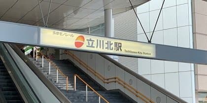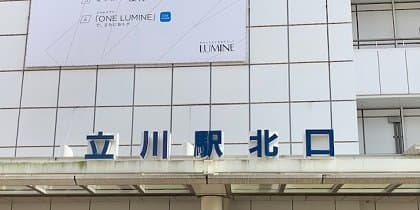 JR立川駅(西改札)を出て、左手に曲がっていただくと北口に出ます。※(東改札)から出られた場合は、右手に曲がると北口に出ます。
