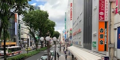 ロータリーを左に曲がり、2つ目の降り口を下ります。LOFT・ビックカメラの通りを直進していただきます。